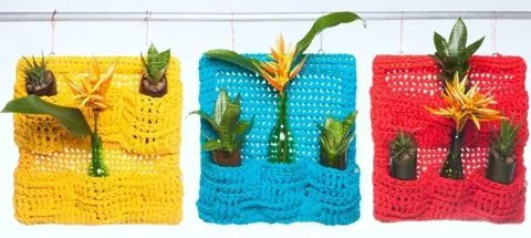 It is an organizer for home or garden, which has 6 pockets. Made in crochet, with a wooden structure. Measurements: 40 cm long, 40 cm wide and 3 cm, weight 1.300g.
