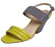 Thick Heel Sandal with gray elastic, made of leather with geometric heel measuring 8.5 cm. It has straps on the front and elasticated leather cutout for added security. <br />